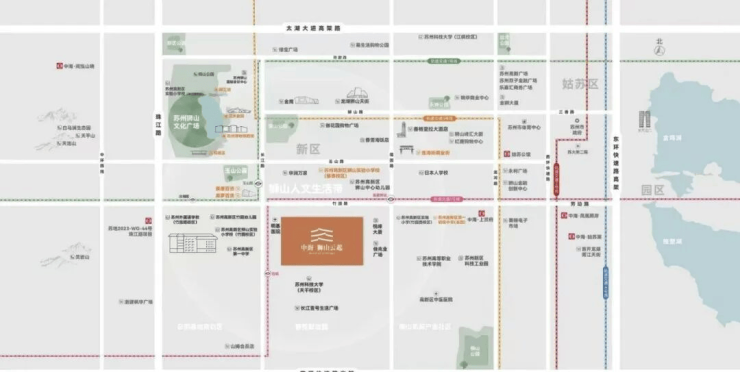 公路:西环、中环西线、苏福快速路以及各城市主干道环绕