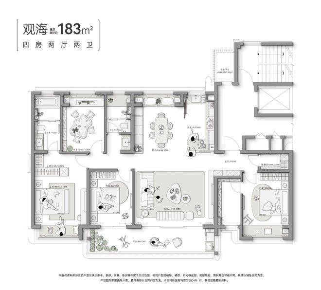 183㎡四居:总价770-830万,位于10#楼,2梯2户配置