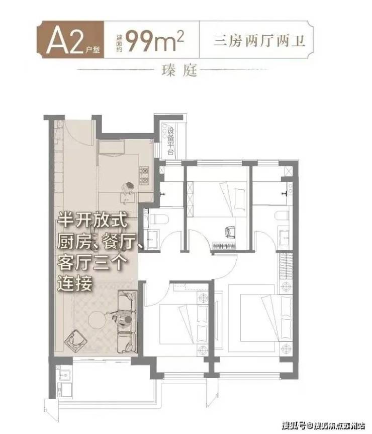 细节一:99㎡户型开放设计,核心区利用率MAX!