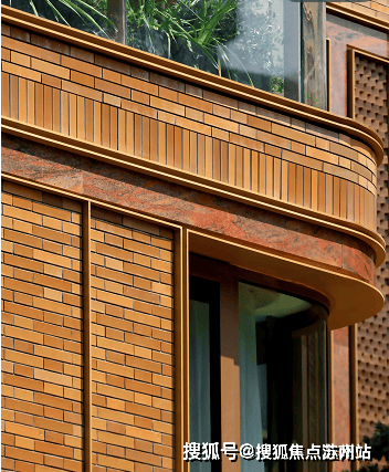 例如,在社区入户,目前已经完美呈现出来的,有强烈视觉冲击的立面 大量的红砖、红洞石及大面积的落地弧形玻璃搭配的相得益彰,整个门头既有厚重的历史感,又不失极简主义的现代美。