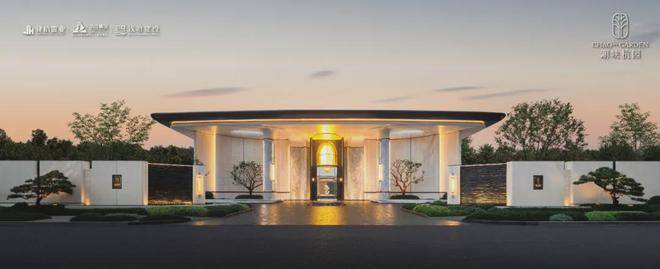 它汲取上海前滩华尔道夫酒店为灵感,以月光米黄石材为主基调,弧形景墙、安第斯雪景奢石柱子、极品铁冬青等结合使用,整体层次细腻,恢弘大气,也是业主身份的象征。