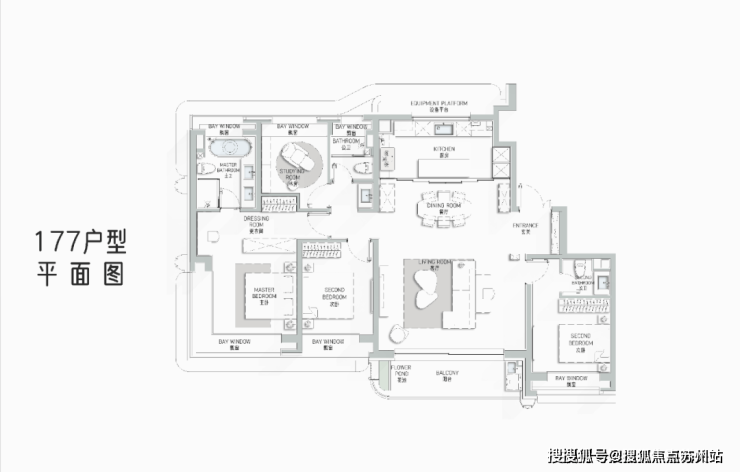 177㎡艺术贵雅奢邸是海上·清和玺压轴力作,延续玺系经典的设计理念和思路, 阔朗的四面大开间设计,客厅做到了 大横厅设计,延续了曲面流体的阳台,并赠送了独具特色的阳台迷你花园。