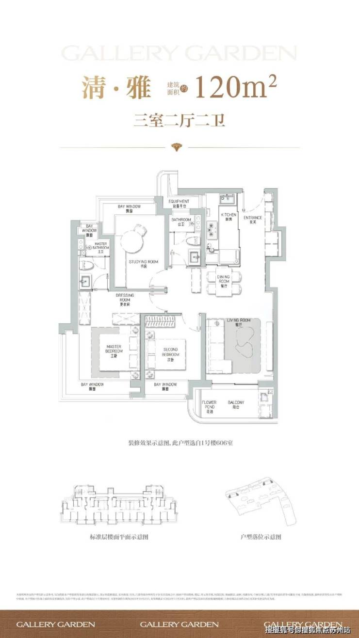 建面约120㎡的户型,定制LDKB一体化宽厅,更舒适的功能定制, 270°转角窗观景套房设计,实现了居住品质与观景的完美结合。