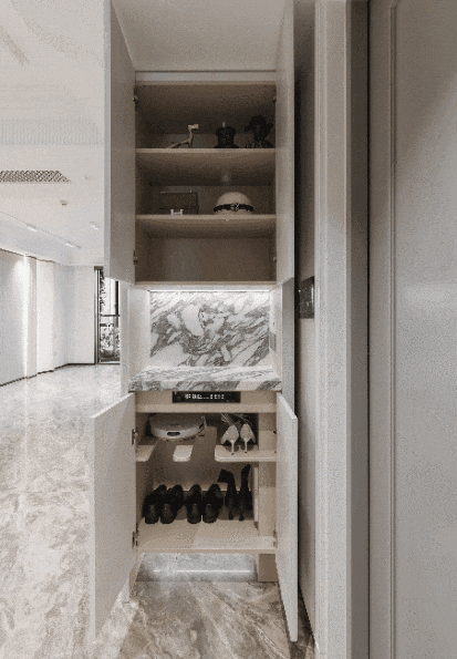 玄关柜比别人更多一点,进门口的玄关,左右两边都打造了玄关柜,功能性十足。