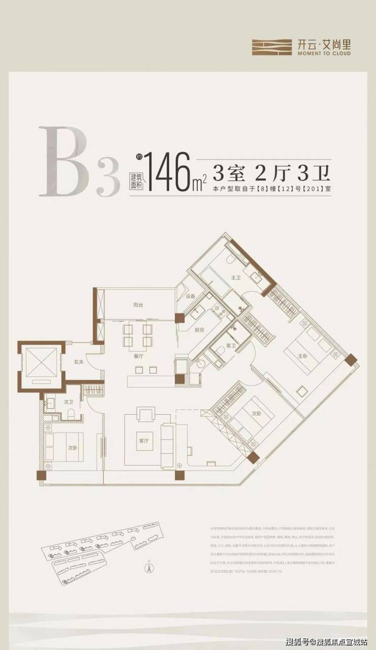 而且项目不仅只有小户型,约146㎡的三房大户型同样相当优秀。