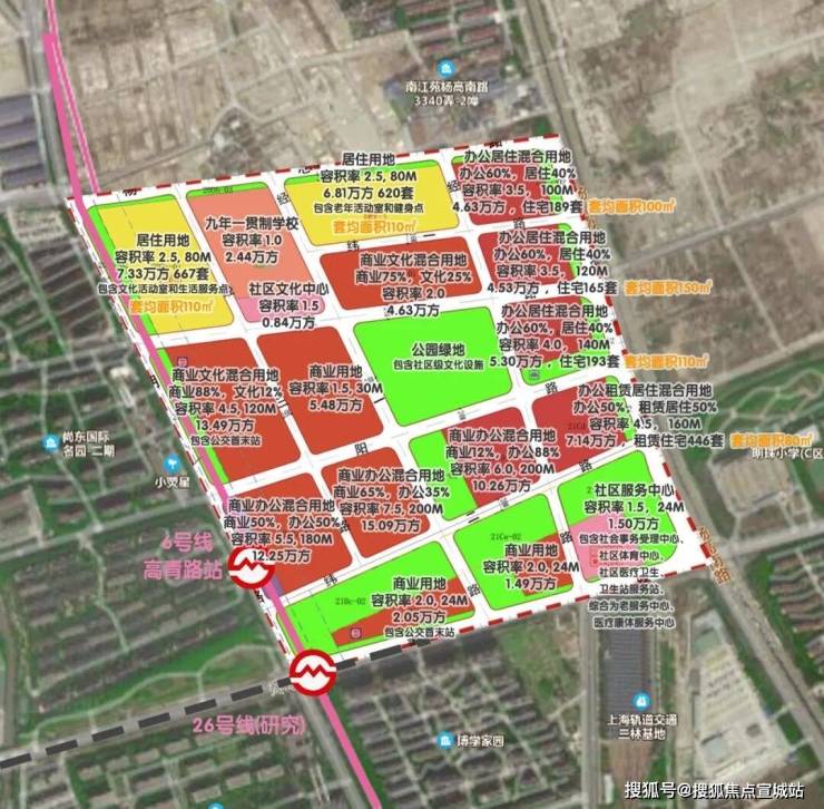紧靠6号线高青路站高强度开发,地块建筑高度最高控制至200米,提供约57万方的商业办公文化设施规模。