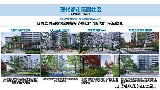 约8000㎡核心景观轴、约2400㎡两个尊享庭院、南北各区设共享花园和私享花园。