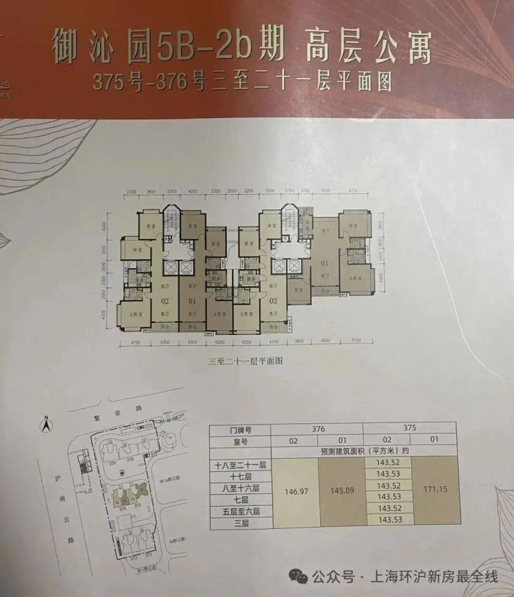 【御沁园】七期将推出3栋18F高层住宅,两梯两户无连廊设计;将推建面约132~172㎡三房户型,其中: