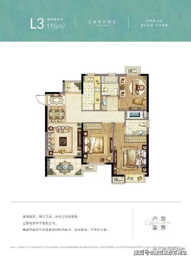 实用性强,无浪费空间,满足三口之家的生活需要就,南向三开间设计,除2个南向卧室外,还有一个单独的储藏室设计