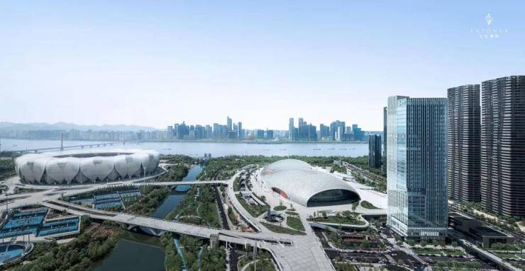 揽一线钱塘江景,坐拥莲花碗与化蝶泳池,背靠国博,对望日月同辉。