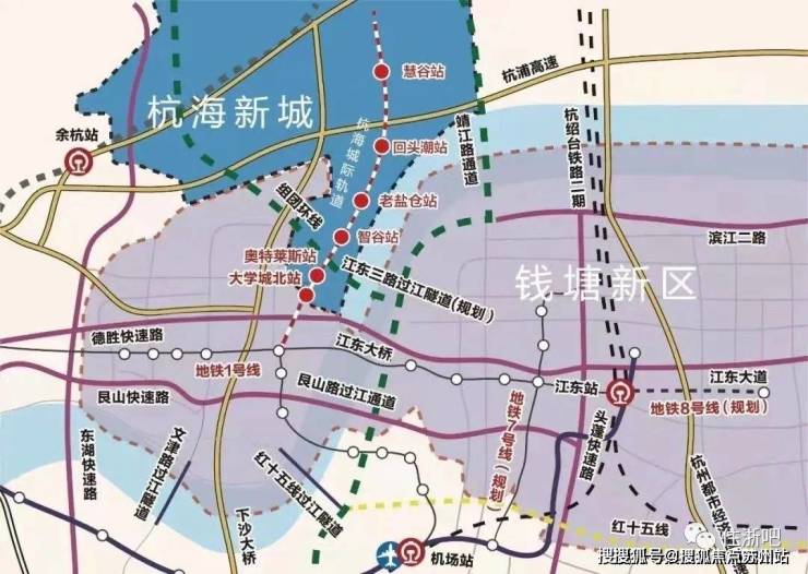 规划中的城市轨迹交通(长安延伸到下沙文海南路站),沿安澜路往南走,在进入下沙后,转到向文海北路;在奥特莱斯、中央绿轴、星星港湾和回头潮节点设站,进一步扩大TOD开发模式的优势。同时,构建“商务+科创+生态”的站城一体化模型