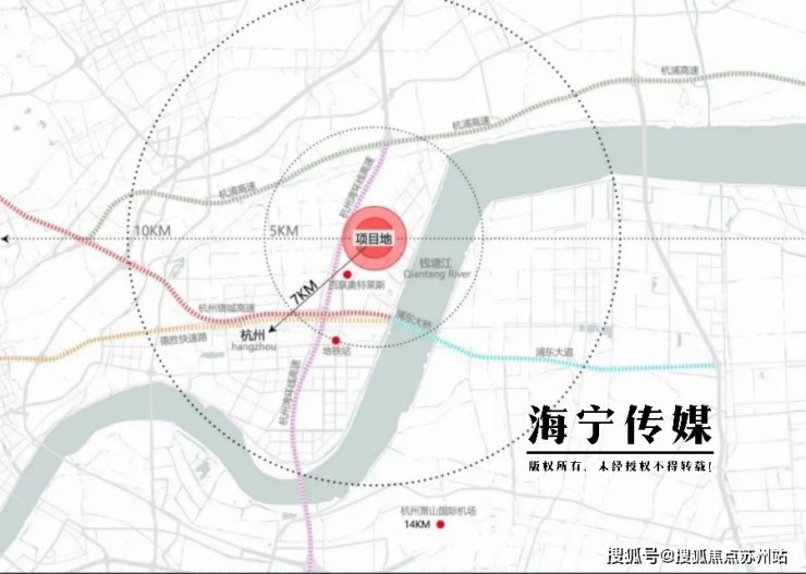 项目与杭州地铁一号线连通,可直通萧山机场。距杭州绕城高速和德胜快速通道3公里、杭浦高速4公里,交通便捷。值得一提的是,待下沙大学城北地铁轨道交通建成后,通过地下通道可直达项目主楼。