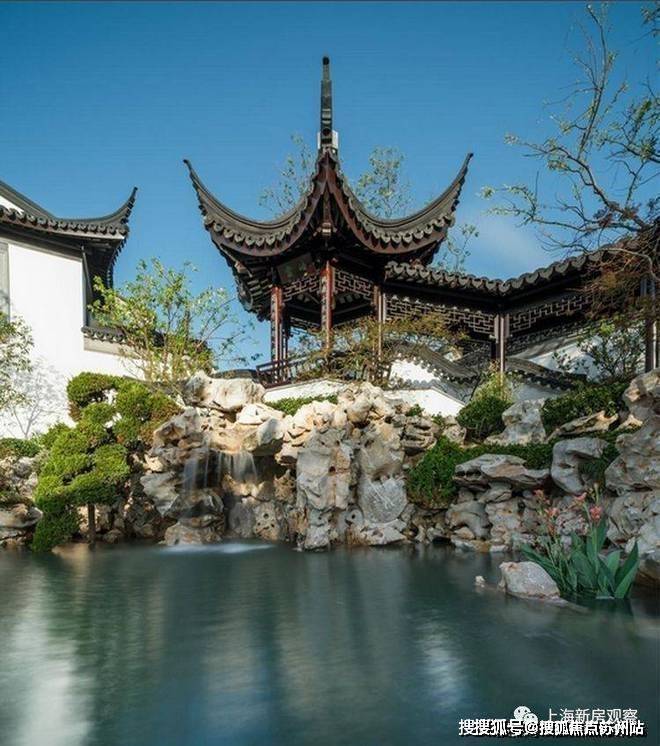 中式园林是最纯粹最理想的精神皈依之所。进入园林庭院,古朴有致,瘦漏透皱的太湖石下一方清泉涵韵其间,低头有池水如镜,抬头有瀑布如练,“水积必然龙有穴”,富贵因子已然埋藏于此。