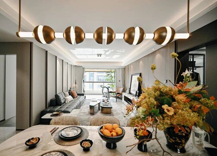 比如吊顶弧度的设计、客厅皮革与大理石的运用,都在诠释品质生活的意境。