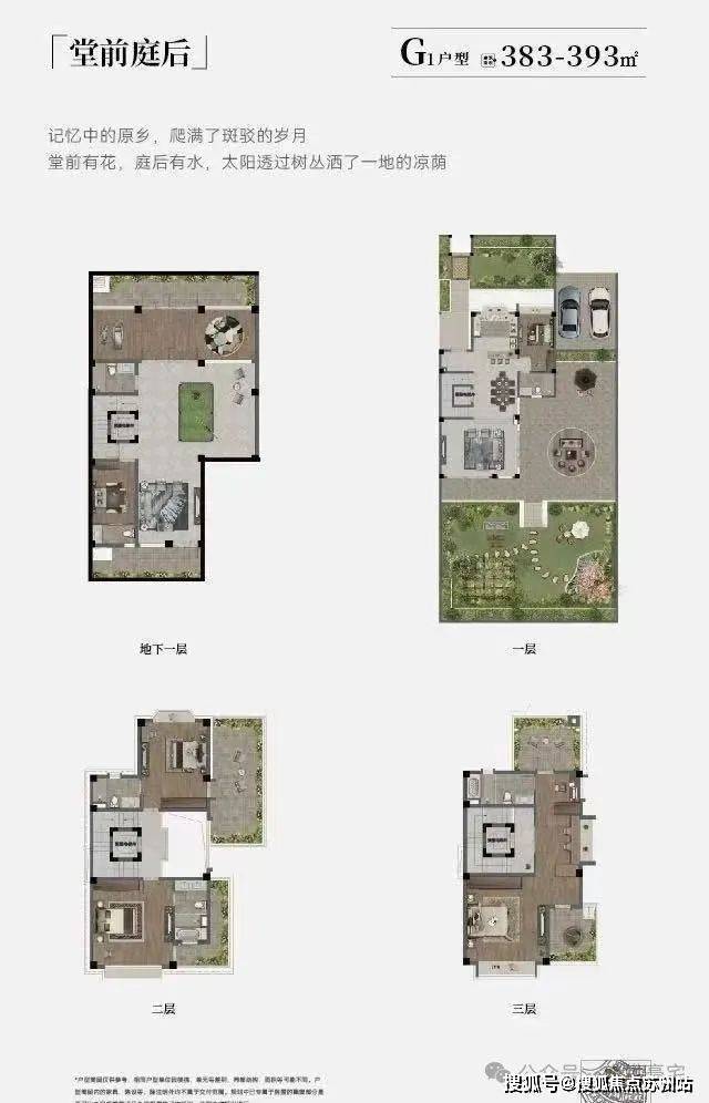“三代同堂,各得其所。地下一层老人棋牌室,一楼老人房,二三楼私密空间。白塘植物园旁,慢下来享受生活。”