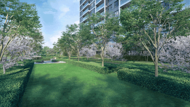 社区内部约37%绿地率打造约10000方的景观,打造具有自然意趣的全龄化活动空间。