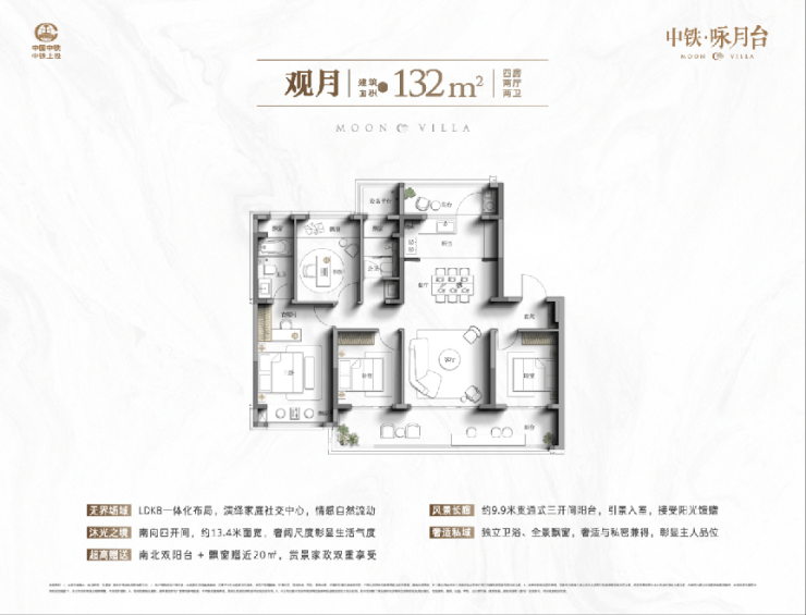 9#楼:建面约132㎡宽境洋房,全南向四开间,规划约9.9米贯通式阳台,超83%实得率,堪比160㎡大平层奢阔体验。