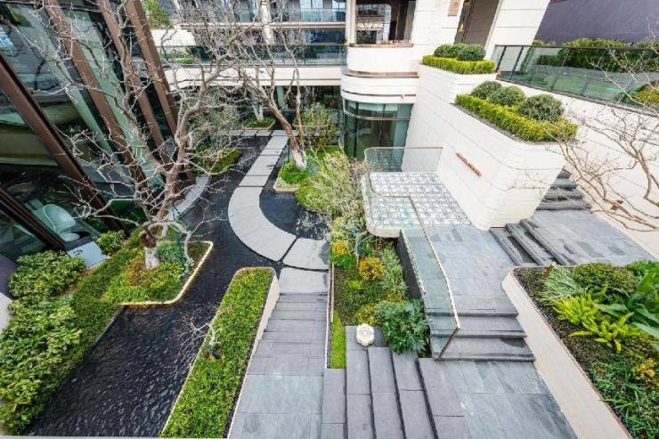 项目景观方面,项目依托台地高差打造约380㎡下沉式庭院,以云台花池串联水景与绿意,规划健身空间、私属会客厅,将高端别墅的配置融入日常。