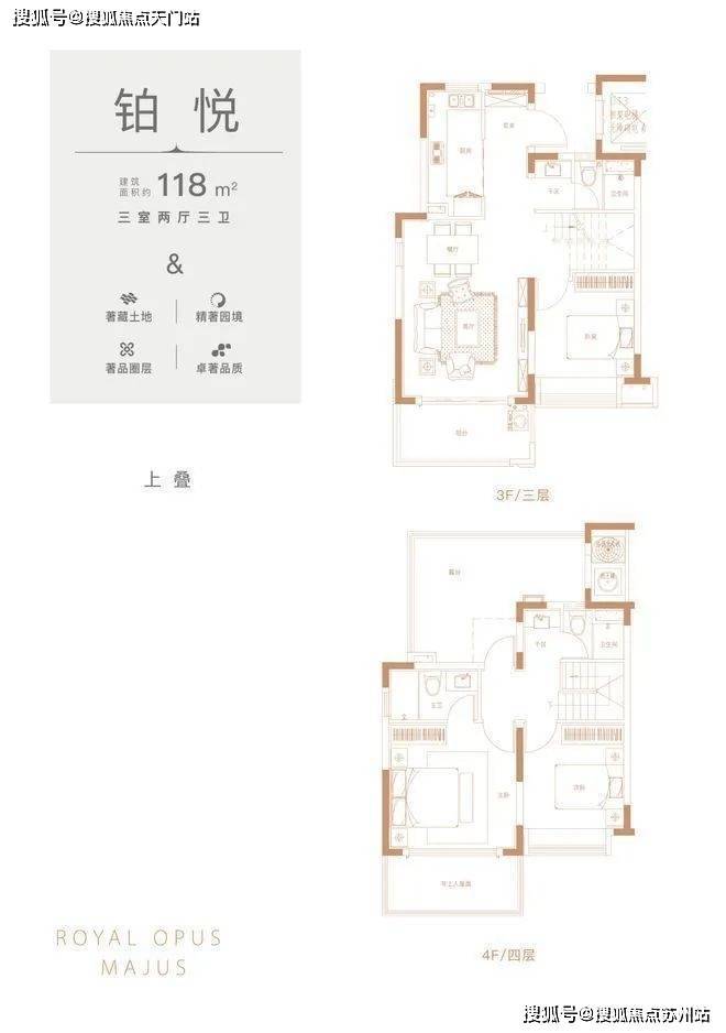 上叠:118(3室2厅3卫),150(4室2厅3卫),200(4室2厅4卫)