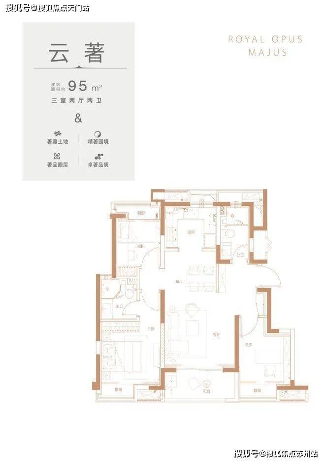▲全能三房,全明设计,双卫设计,通透舒适;南向三开间大面宽,更多阳光照拂,提升生活舒适感;独立书房布局,寓于静谧一角;风雅静逸,满足主人优雅品味