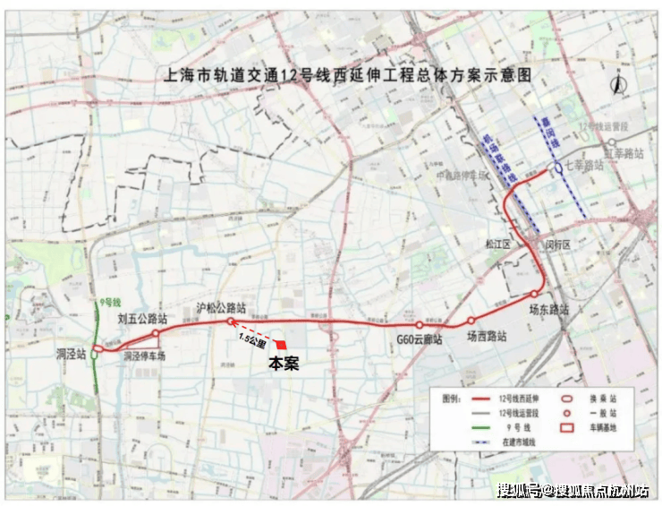 距离12号线西延伸(规划建设中)沪松公路站直线约1.5公里
