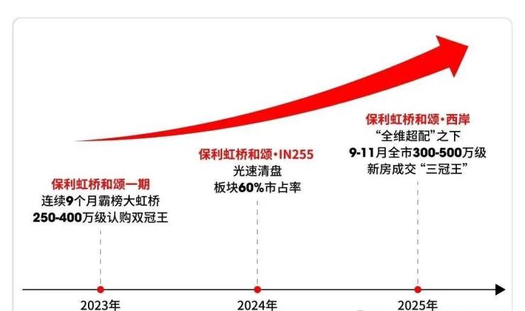 作为保利深耕大虹桥的巅峰之作,项目不仅以四批次收官加推为年度画上圆满句号,更凭借蝉联9-11月300-500万级全市三冠王(面积、套数、金额)的硬核成绩,再度印证了其300万级年度红盘的市场地位,爆款基因自始至终!
