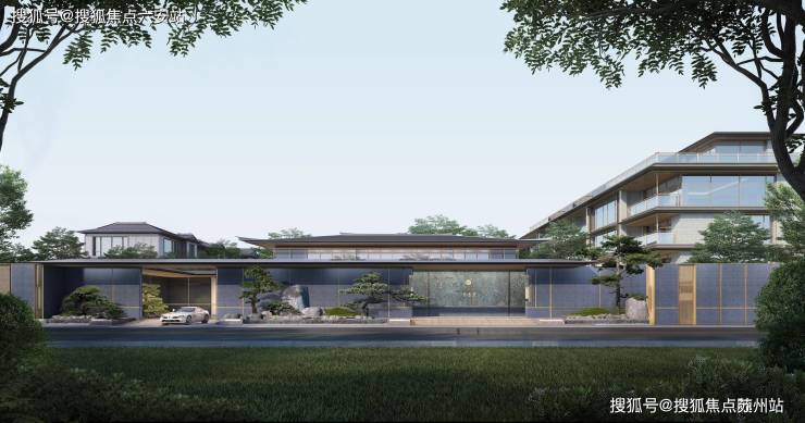 建筑立面:铝板+石材的“隐奢质感”。项目采用铝板+干挂石材的经典组合,基座以深灰色石材打底,中段用浅米色真石漆搭配金属线条,屋顶采用传统坡屋顶形制,檐角微微上翘——既避免了传统别墅的厚重感,又通过材质的碰撞,营造出“现代而不失温度”的高级感。阳光下,石材的温润与铝板的冷冽交织,建筑的轮廓在光影中若隐若现,连风里都浸着宋韵的雅致。