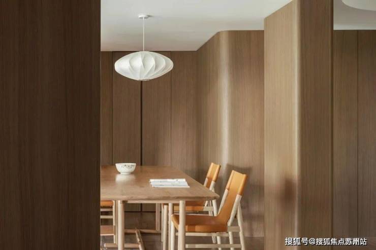 由玄关进入,是一个会客厅与餐厨空间共融的大开间。不同功能区域之间,既没有物理意义上的阻隔,但各自具备场景的围合感。在既定的生活样板之外,更多元的日常被允许自然发生。