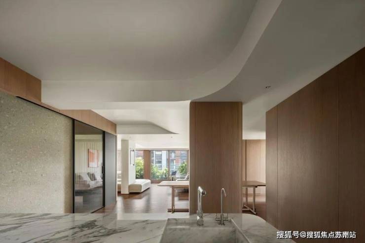 以探索柔软性和感性为目的,旨在为居住者提供一个放松身心的场所,卧房展现出柔和且静谧的视觉感受,引导人放松一切感官,身心可以短暂地抽离于琐碎的日常,在静谧中重新链接获取巨大的能量。