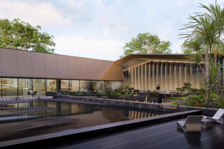 建屋・新棠玥的景观设计由A&N尚源景观担纲.当市场沉溺于元素堆砌时,建屋・新棠玥对苏州名园沧浪亭空间格局进行现代转译,提炼“池岛、静潭、山石、水榭、草林、溪嬉”六大核心场景,勾勒出一个园中有景,景中有园,强调留白与意境的度假秘境.
