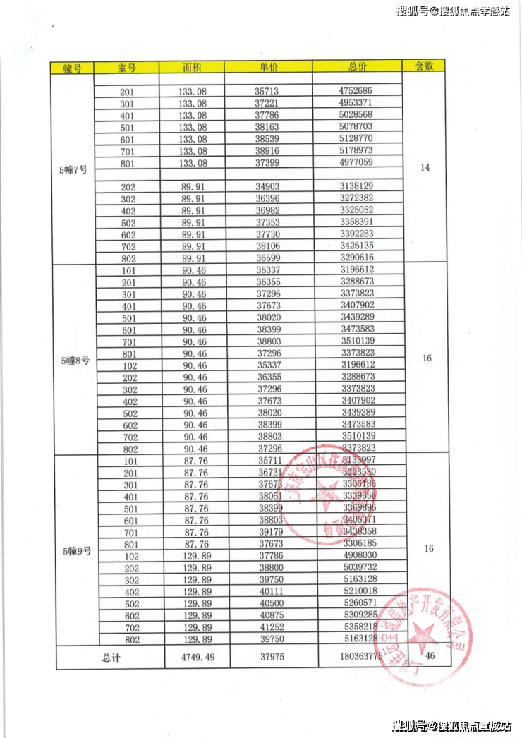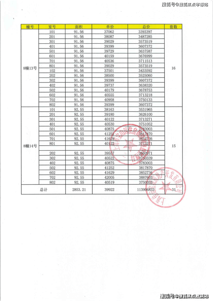 项目一房一价表