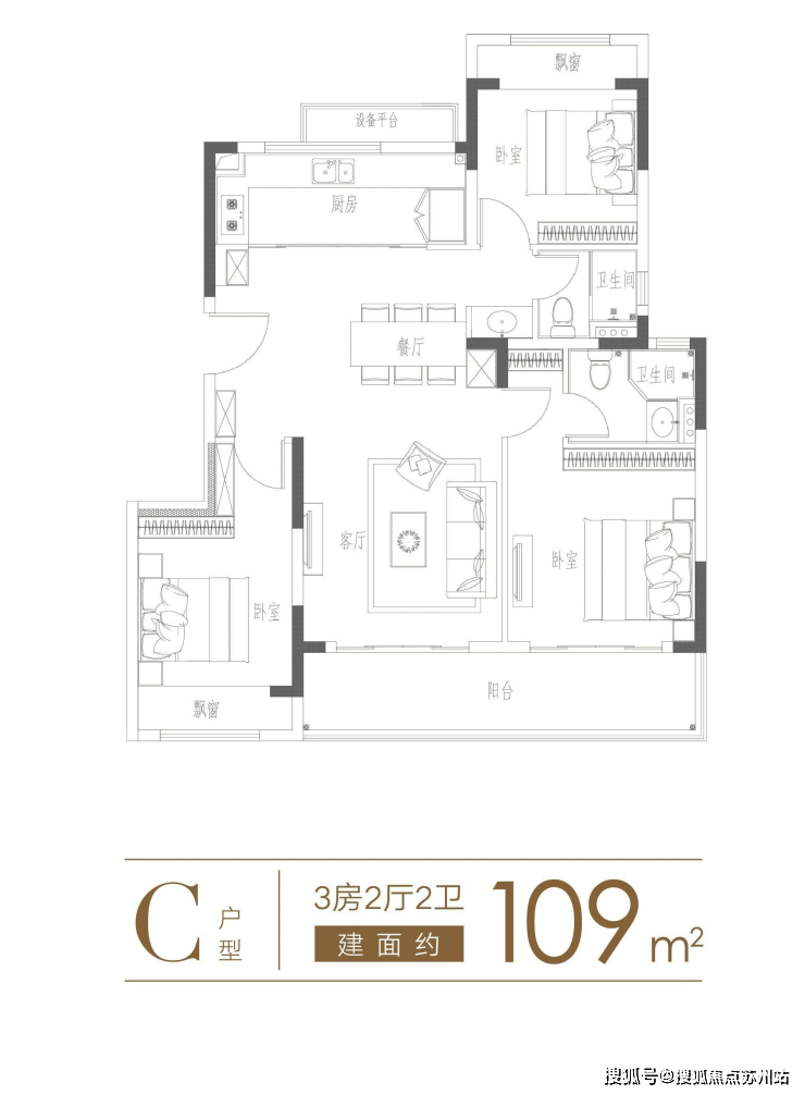 洋房:109-140㎡三至四居(得房率约82%-87%)