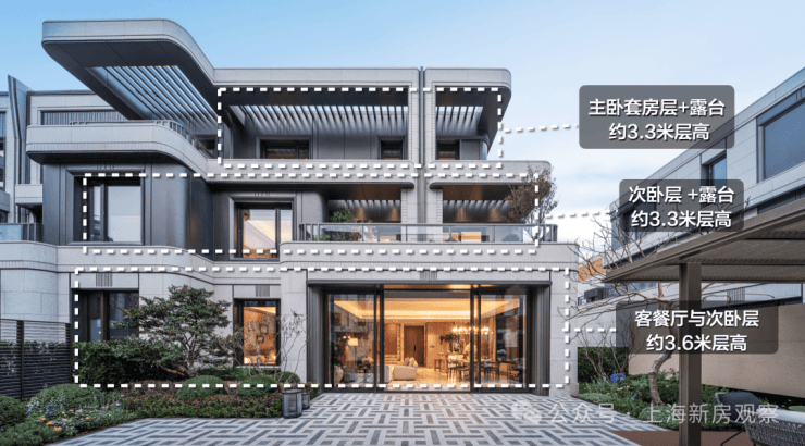 最后是分层而居的纯粹墅居体验!前滩公馆·澜墅深谙衡复老洋房的分层礼序,以“一层一世界”的垂直哲学,为当代城市菁英们重构生活场景:
