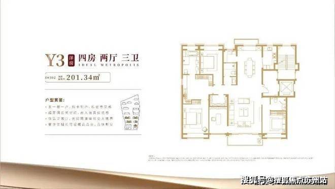 楼盘主力洋房户型包括建面约140㎡3房3厅2卫,建面约201㎡4房2厅3卫。
