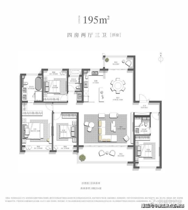 建面约195㎡,四房两厅三卫[洋房]