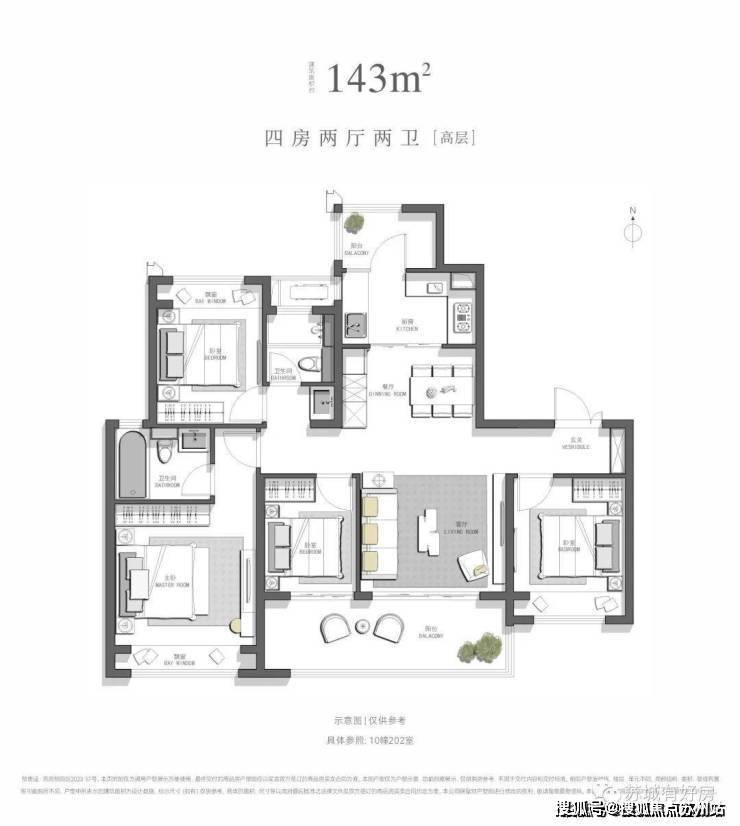 建面约143㎡,四房两厅两卫[高层]