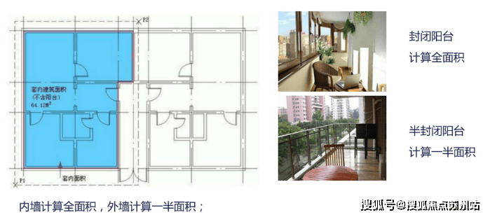 5、 套内建筑面积=房屋面积+墙体面积+阳台面积