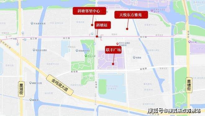 背依斜塘老街时尚街区,紧邻邻里中心,向东约1km(一站地铁)奥体中心,向西约1.5km邻瑞广场山姆超市、向北约2.5km圆融时代广场、久光百货、IFS苏州国际金融中心。沿中新大道与金鸡湖隧道直达苏州中心。