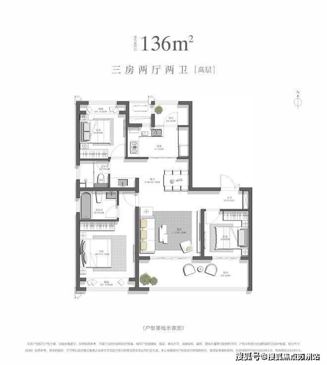 建面约136㎡,三房两厅两卫[高层]