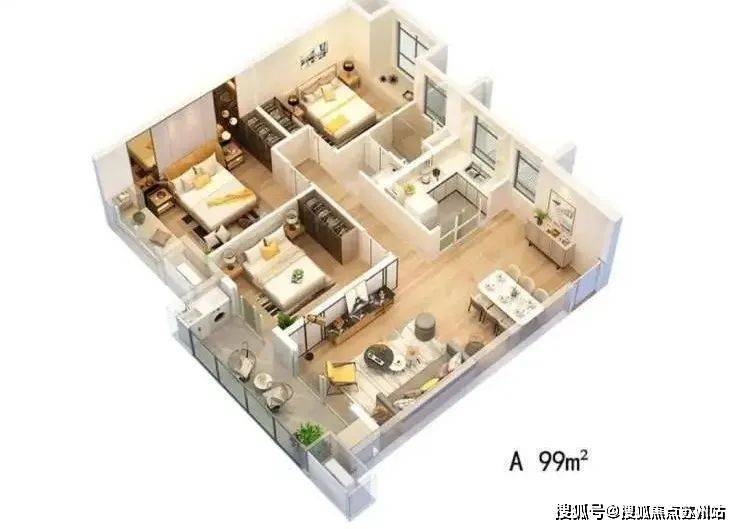 阳台是建筑的延伸,洛克公园将这种延伸引入客厅与卧室,朗阔客厅连接宽景阳台,静谧卧室拥享生活阳台。双阳台的用心设计,双倍的享受。一个用于居家储纳,洗、晒、晾一站解决;另一个用于观景,园中美景尽收眼底,亦或建造一个小花园,清风在侧,美景陪伴。日常生活明确分区,兼顾生活、景观的同时,带给居者一种诗意享受。