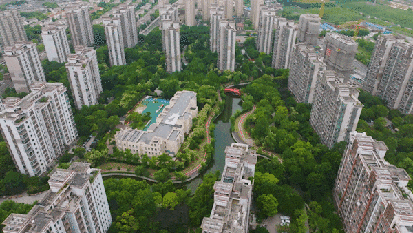 项目内外兼修的生态谧境已经实景呈现,小编也第一时间去到了现场航拍: