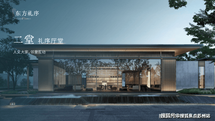 一园三堂的归家动线,象征着东方人文礼序。建筑风格造型,灵感源自金镶玉设计,提取其“曲”的形和白金配色应用到塔楼立面上,彰显项目的温和雅丽与尊贵典雅。