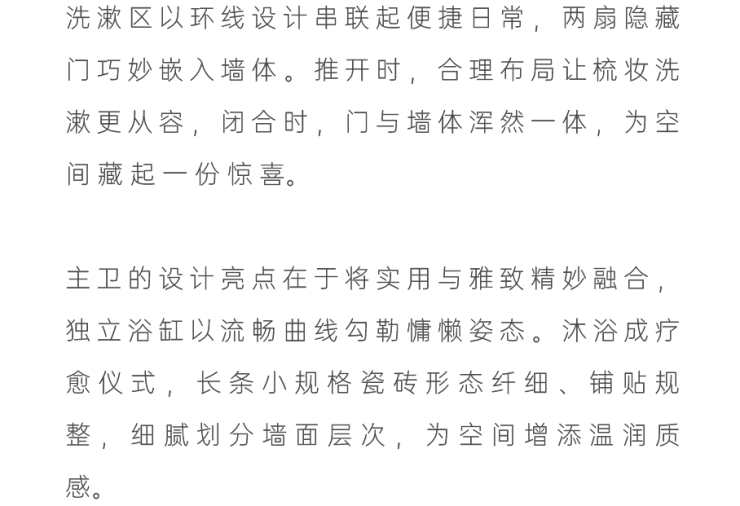 整体以现代自然主义为基调,借自由开放的空间美学与个性家居布置,诠释简约松弛的生活哲学.