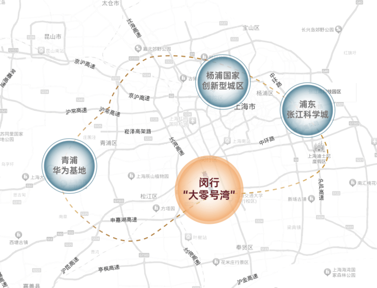 2022年8月,市政府常务会议原则同意了《推进“大零号湾”科技创新策源功能区建设方案》.“闵行“大零号湾”要与杨浦国家创新型城区、已具备辐射能力的浦东张江科学城以及正加快建设的青浦华为基地一起,形成东、西、南、北各具特点的全市创新格局,共同支撑起建设具有全球影响力的科创中心.”(信息来源于:上海发布)