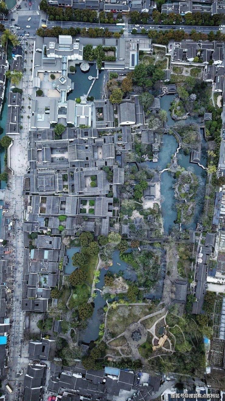 ▲苏州拙政园·鸟瞰图(左上角为苏州博物馆)