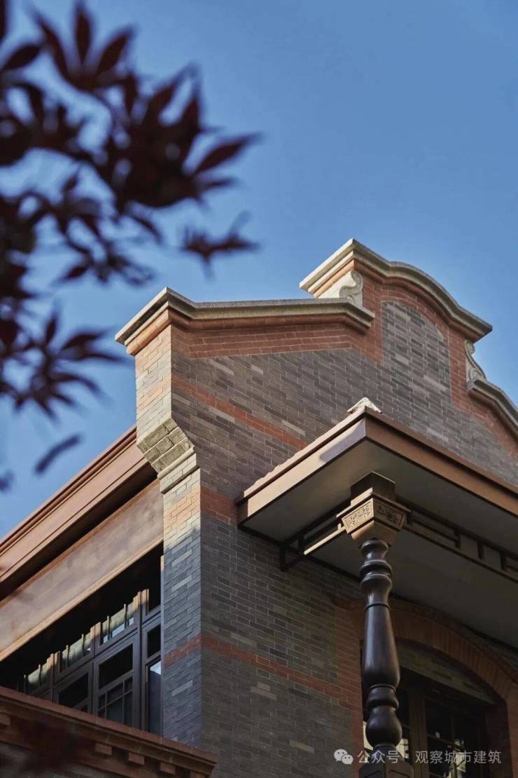 特别是老洋房“坡屋顶+飞檐”的设计:没有照搬传统中式的繁复雕花,而是做了简化处理,线条利落却藏着江南建筑的韵味,既避免了现代建筑的冰冷,又不会和周边老房子显得格格不入。这种设计,让顺昌玖里“生长”在这片土地上,走在顺昌路上看过去,新旧建筑无缝衔接,毫无违和感。