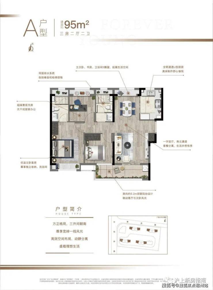 建面约95㎡3房2厅2卫