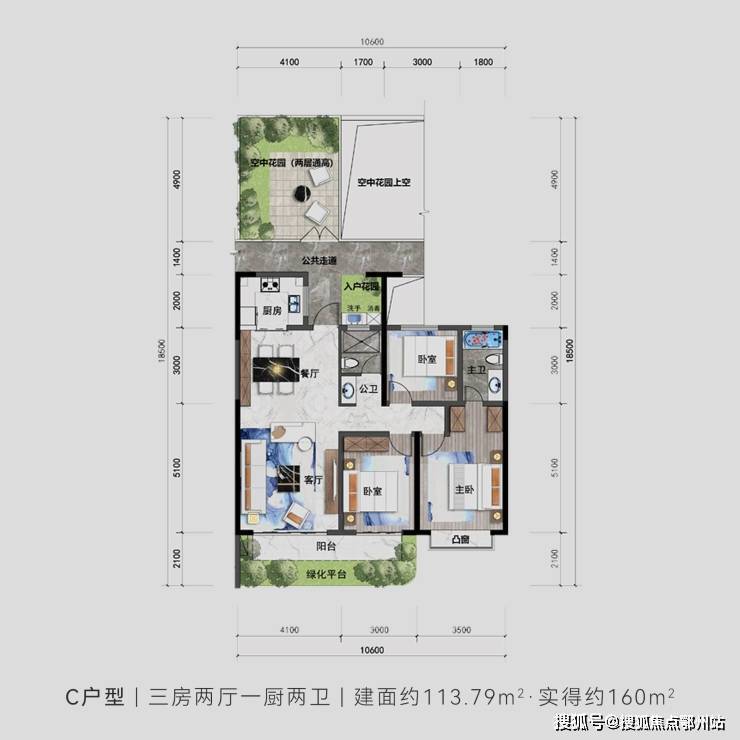 每家每户都赠送一个34㎡、挑高6m的空中大花园。花园里热带植物高低搭配、错落有致,可以说是把热带雨林搬到了家门口。花园空间宽大,采光、通风、视野都做到了极致。不管是喝茶聊天还是周末烧烤都有空间让您发挥创意。