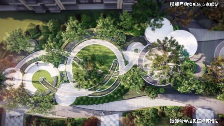 公园+花园的双园社区、品质归家入口、特色阳光草坪、双会客系统、主题儿童乐园、健身系统六大功能价值叠加由三条不同主题的林荫步道和三个圆形景观节点组成的全区漫步系统,共同构建“6+1”森O₂家园。