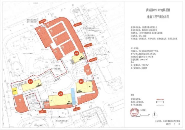 黄浦区021-02地块,即黄浦弘久21街坊-『新弘·北京道』的土地指标如下:占地面积:20,290平方米;计容面积:69,410平方米;业态:住宅80%+商办20%;包含住宅:55,528平方米。